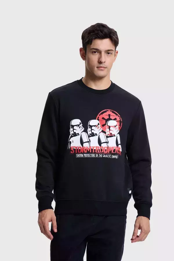 PolerĂ³n negro de Star Wars para hombre con un impactante diseño grĂ¡fico de Stormtroopers en colores vibrantes. Cuenta con cuello redondo y puños acanalados para un ajuste cĂ³modo y estilo casual. Perfecto para los fanĂ¡ticos de la saga, combina a la perfecciĂ³n con jeans o pantalones deportivos para cualquier ocasiĂ³n. ¡Imprescindible!