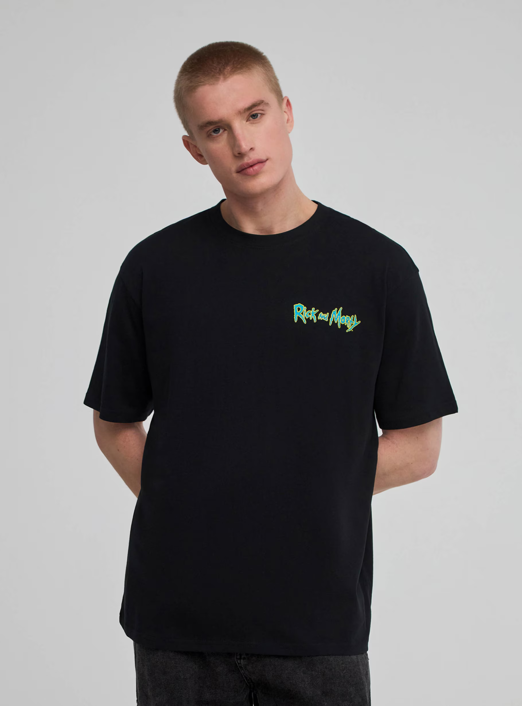 Esta camiseta negra está diseñada para los fanáticos de Rick and Morty, con un estilo minimalista en el frente y un diseño llamativo en la parte trasera. Es ideal para combinar con jeans o shorts, ofreciendo un look cómodo y lleno de personalidad. Una prenda imprescindible para los seguidores de Rick and Morty