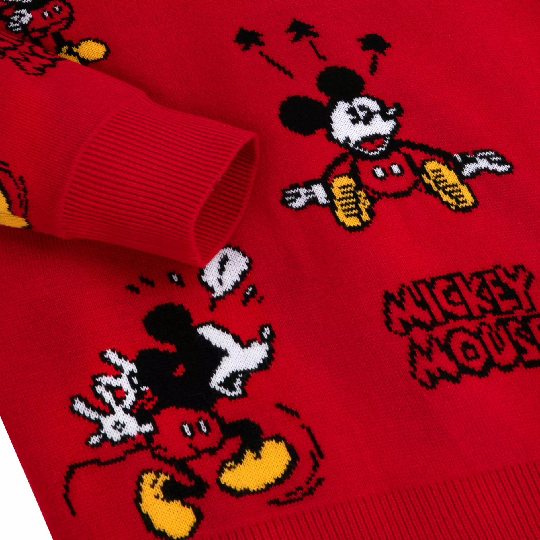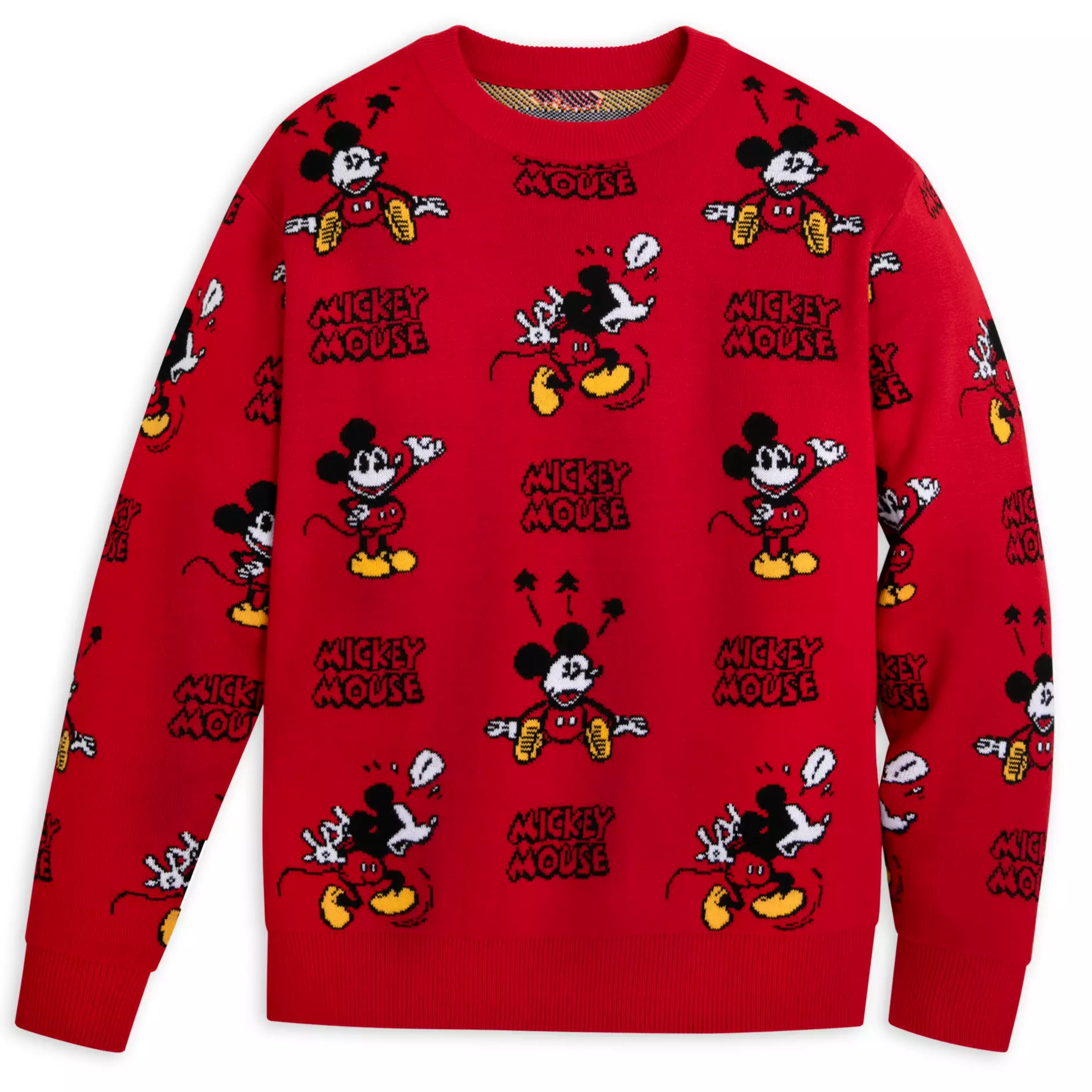 Suéter rojo vibrante con un patrón repetido de Mickey Mouse en poses divertidas, acompañado del texto “Mickey Mouse” para un toque retro y juguetón. Perfecto para ocasiones informales, reuniones familiares o festividades, combina genial con jeans o leggings para un look relajado y lleno de energÃa. ¡Imprescindible para fans de Disney!